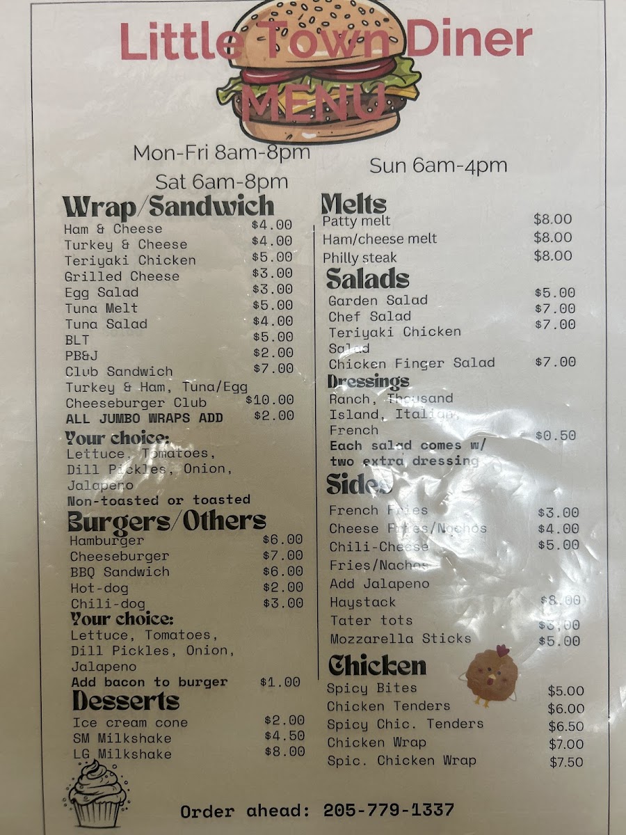 Welcome to Little Town Diner, a cozy eatery located at 4323 Co Rd 49 in Kennedy, Alabama. This charming diner has quickly become a local favorite, known for its warm hospitality and fresh, delicious food that transports you back to homestyle cooking.